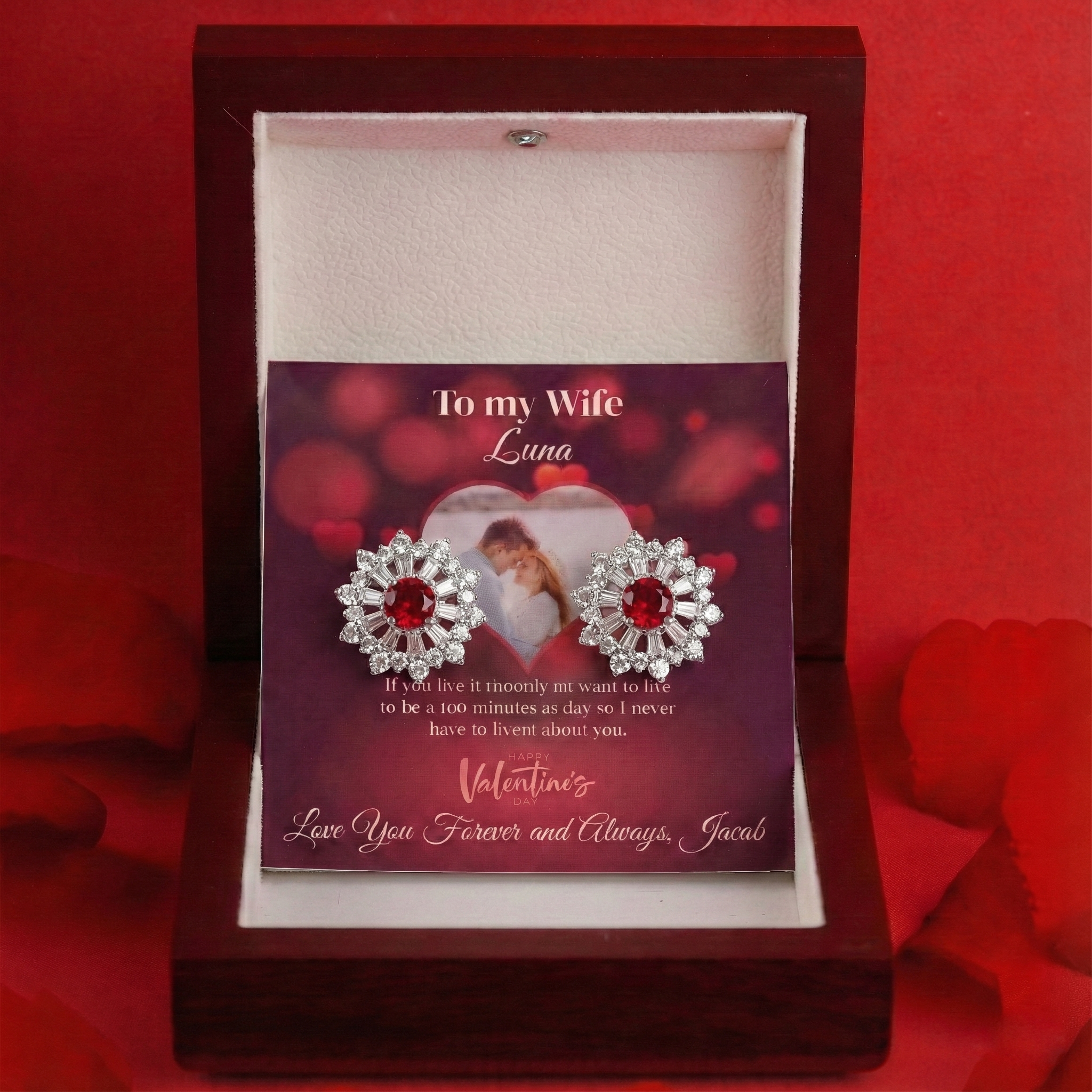 Personalized Gifts for Wife - Twinkle Wheel Earrings - Happy Valentine's Day to My Beautiful Wife